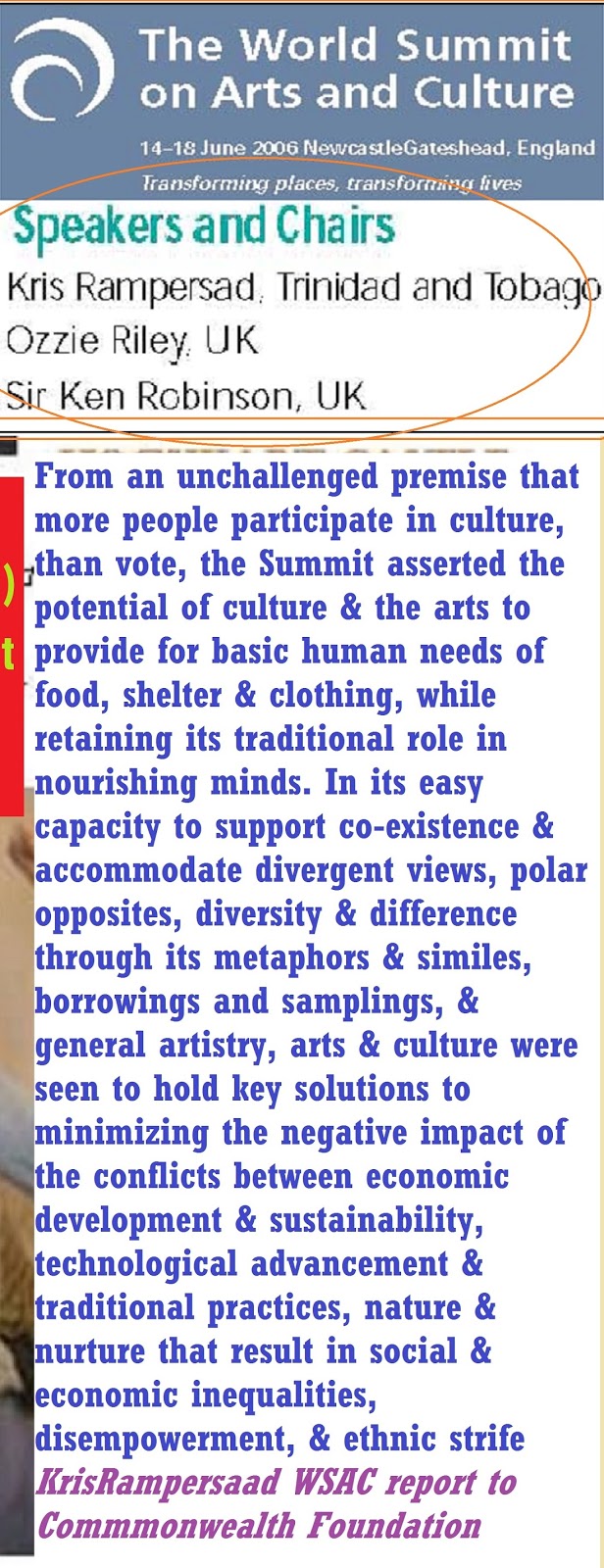 Creative Economy to World Summit on Arts & Culture to reposition sustainable development by Dr Kris Rampersad. Request courses, seminars, presentations, webinars, resources from th GloCaL Knowledge Pot www.krisrampersad.com